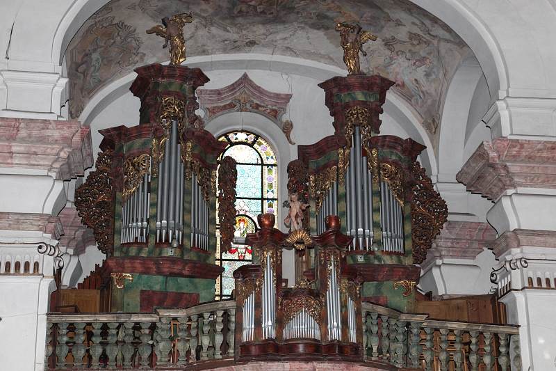Domažlice, městská památková rezervace, barokní kostel narození panny marie, interiér, oltář.